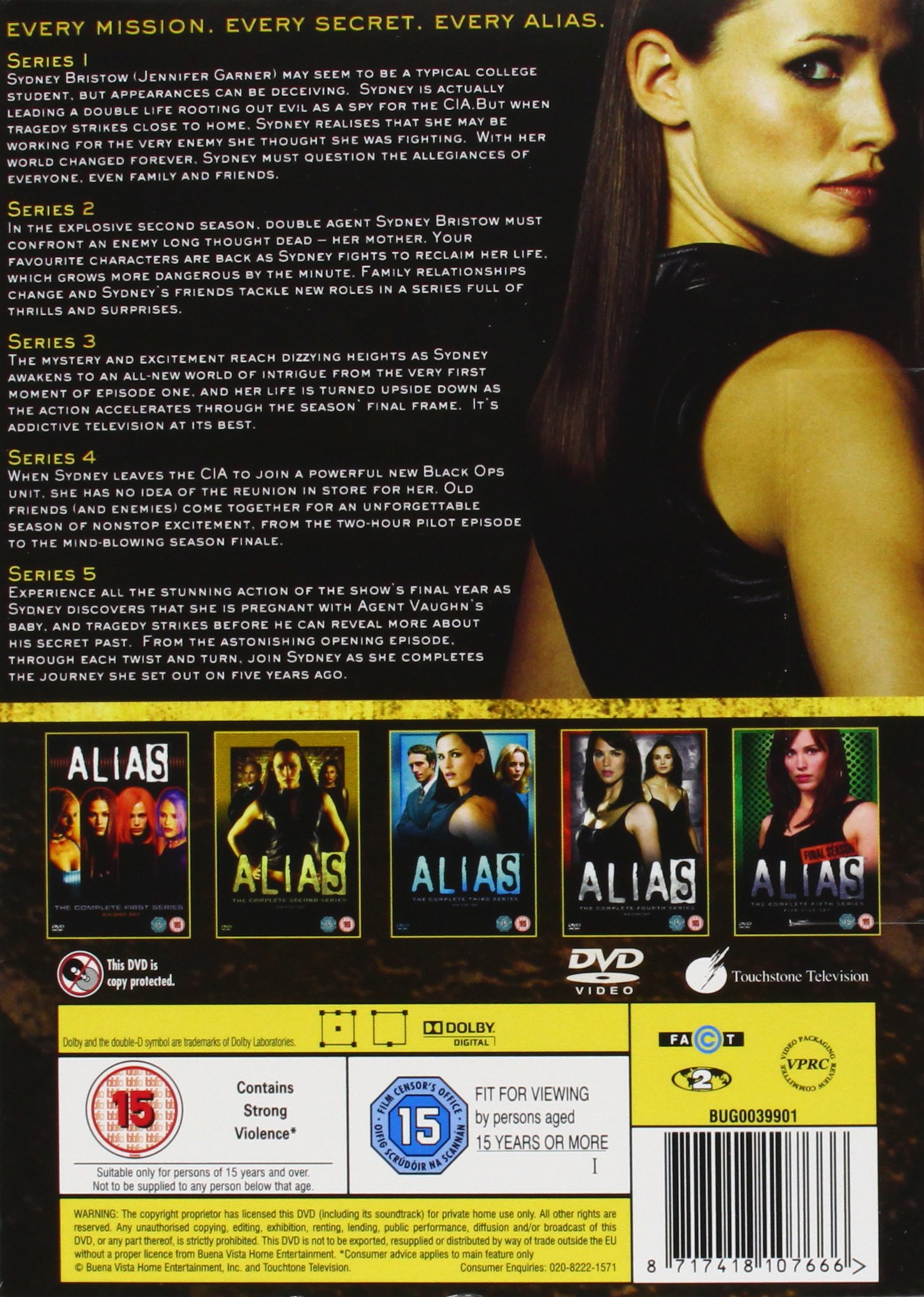 Jennifer Garner Alias Complete Collection Series 1 5 Dvd Boxset Dvd Boxset Tower Records Dublin Ireland. United kingdom released, pal/region 2 dvd: Jennifer garner, ron rifkin, carl lumbly. Mac, pc, android and iphone support. Has been added to your cart. Full episodes of tv show alias (season 1, 2, 3, 4, 5, 6) get in mp4, mkv and avi! According to creator 'jeffrey abrams', the background of the words alias in the opening credits come from home movies of his family. Alias is an american action, drama, thriller, and science fiction television series which debuted on september 30, 2001, on abc. English ( dolby digital 5.1 ), english ( subtitles ), widescreen (1.78:1), special features: Apart from the pilot, the episodes in alias are often unconventionally structured in that the title credits are usually shown well into the plot, almost as an afterthought. Season 1 movie to your friends. It concluded on may 12, 2002, with the 22nd episode. Season 1 of alias began airing on september 30, 2001. The entire world of 'alias' is turned upside down. Jennifer garner, ron rifkin, carl lumbly. Full episodes of tv show alias (season 1, 2, 3, 4, 5, 6) in mp4 avi and mkv download free.